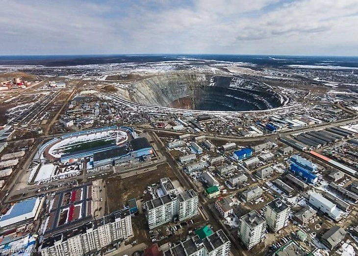 Или поле в Якутии прямо рядом с огромным алмазным карьером.