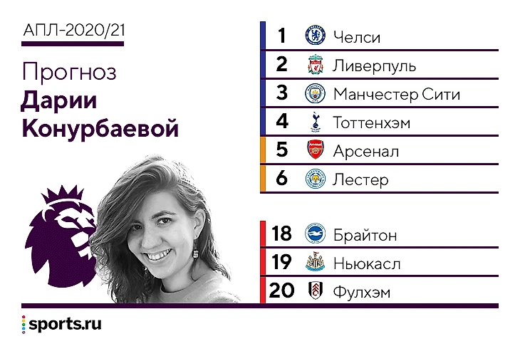В субботу стартует новый сезон АПЛ. Год назад в редакции Sports.ru нашелся только один человек, который угадал чемпиона – Дария Конурбаева. Осенью 2020-го в «Ливерпуль» снова верит только один. Впрочем, интрига в Премьер-лиге не ограничивается чемпионством. Мы также спросили у наших авторов, кто займет первые шесть мест, какие клубы вылетят и – самое главное – когда уволят Жозе Моуринью.