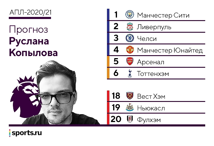 Если даже «МЮ» в итоге обгонит «Ливерпуль» и «Сити», они все равно будут где-то рядом, а вот следом наверняка пристроится «Арсенал» – Артета уже показал, что умеет менять схемы и выигрывать матчи с прямыми конкурентами, а Лэмпард наверняка поставит всех новичков в состав разом (я так всегда делаю в фэнтези!) и потом будет долго балансировать состав. А «Лестер» с восстановившимся Мэддисоном и Рикарду Перейрой в новом сезоне точно будет играть лучше, чем летом (хуже просто невозможно) – и замкнет шестерку.