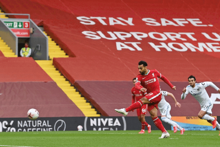 4-я минута. Робин Кох дебютировал за «Лидс» – и сразу на «Энфилде». Кажется, из-за стадиона и самого факта дебюта немец дико нервничал: на 4-й минуте замешкался и не убрал руку – Салах попал точно в нее. Египтянин уверенно разобрался с точки, 1:0.