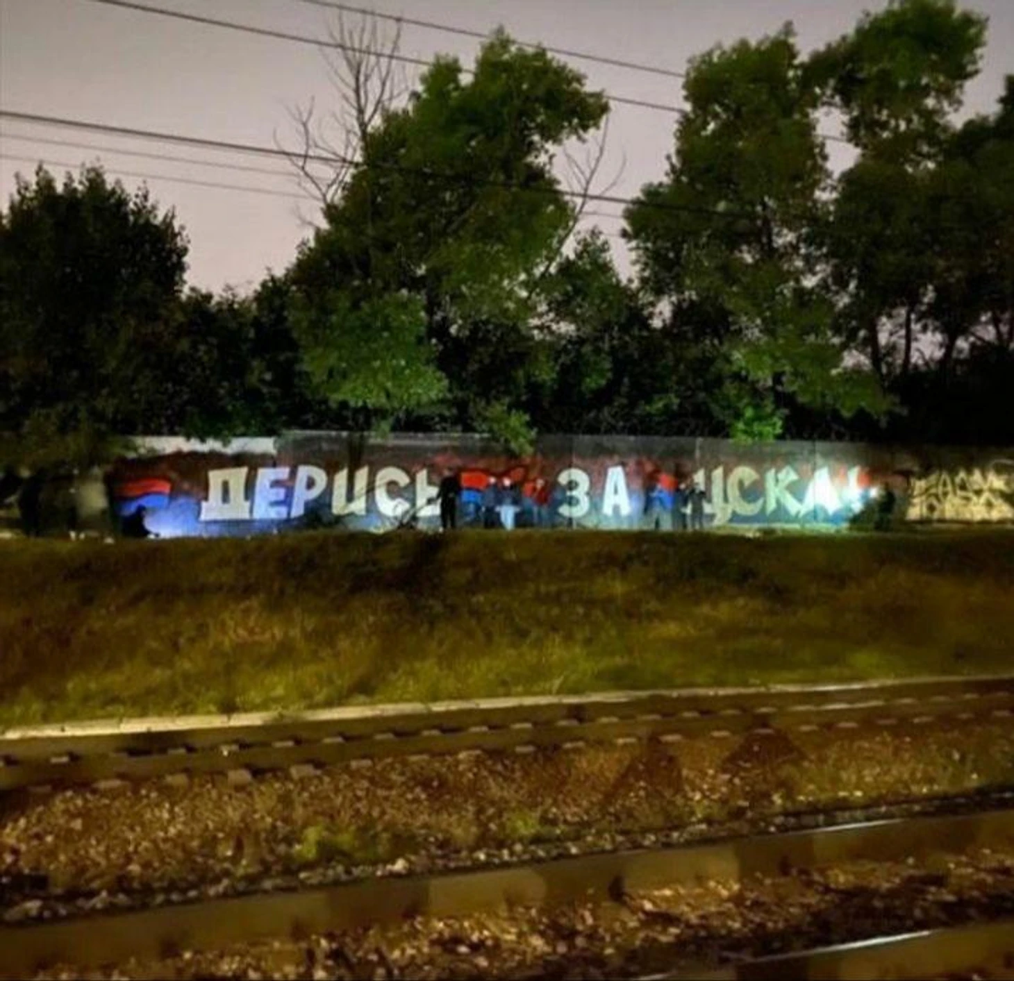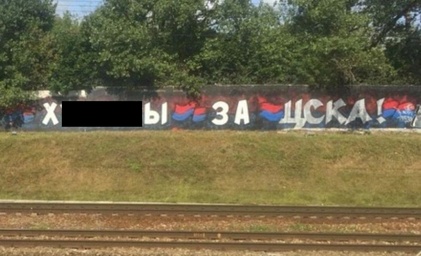 Фанаты красно-синих не ограничились двумя ночными "перебивами", а также исправили ещё одно неприятное для них граффити, расположенное вдоль железнодорожных путей.