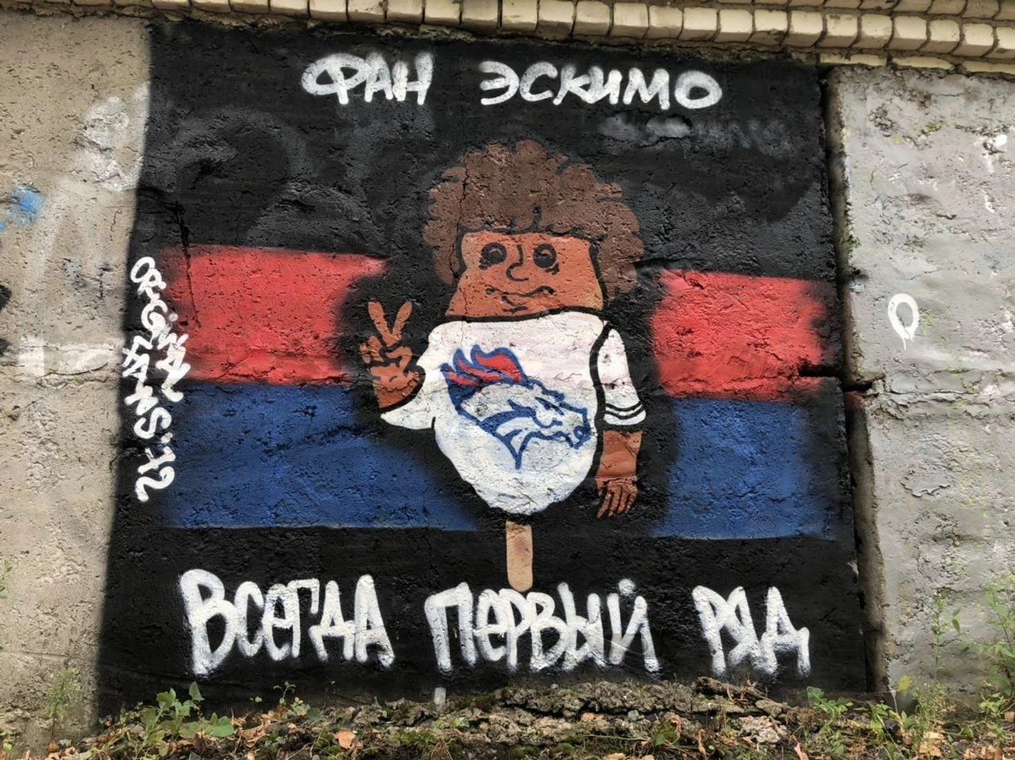 Здесь спартаковцы нарисовали широкого известного в узких кругах фана Эскимо. Как говорится, кто в теме, тот знает (с)