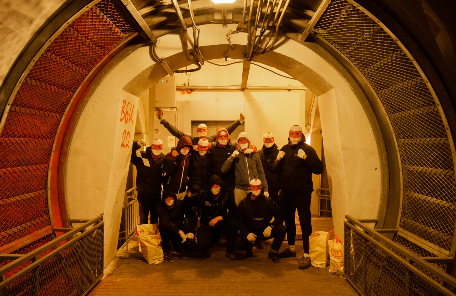 Также фанаты красно-белых из объединения B6 United отметились довольно масштабной работой (53х3 м) на одном из надземных переходов. Рисунок был сделан изнутри: