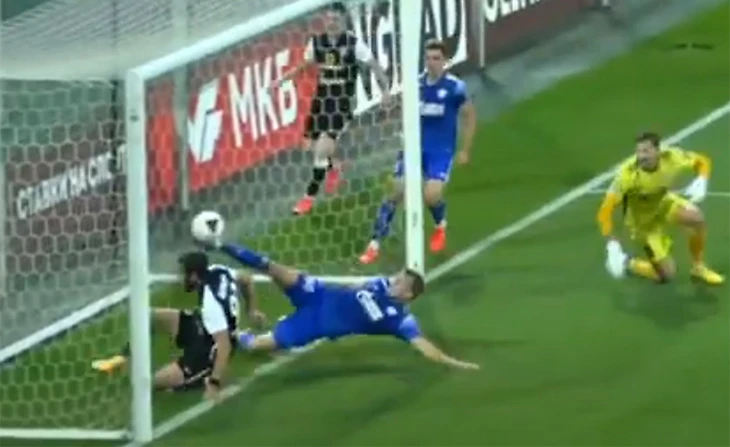 Как и ожидалось, футбол в первом тайме получился максимально упорным. Соперники поочерёдно владели инициативой, а опасных моментов практически не было. И всё-таки в одном из эпизодов торпедовцы вроде бы забили, однако судейская бригада гол не увидела. Защитник «Оренбурга» выбивал мяч, залетавший в пустые ворота, но системы VAR на матчах ФНЛ нет. И всё-таки гол, скорее, был. Судите сами.