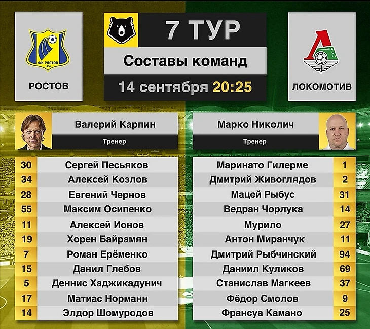 В прошлом сезоне команды обменялись победами. Сезон 20/21 играющие команды начинают сложно. "Ростову" тяжело даются голы, всего 4 в предыдущих 6 турах, но в то же время 3 матча без поражений и в случае победы можно рассчитывать догнать ЦСКА. "Локомотиву" сложно даётся игра в принципе. Последний раз выигравали месяц назад и серия из 4 матчей без побед. Неожиданно для себя железнодорожники учатся играть в новый футбол, где нет креатива от Алексея Миранчука, а Дмитрий Баринов выбыл на долго. Добавим к этому слабую форму Крыховяка, который остался в запасе и потерянного Смолова.