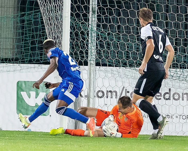- Интересно, что в ответной атаке Джоэль Фамейе буквально внёс мяч в ворота, однако работавший на этой половине поля лайнсмен справедливо зафиксировал офсайд. А за две минуты до перерыва Амур Калмыков неточным пасом сорвал партнёру выход один на один с кипером. Так или иначе, а после первого тайма на табло остались нули.