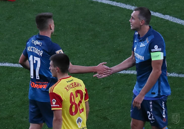 В начале матча крайние полузащитники "Зенита" меньше смещались в центр под удар. Наверное это связано с флангами: левша Малком играл слева, а правша Андрей Мостовой справа.