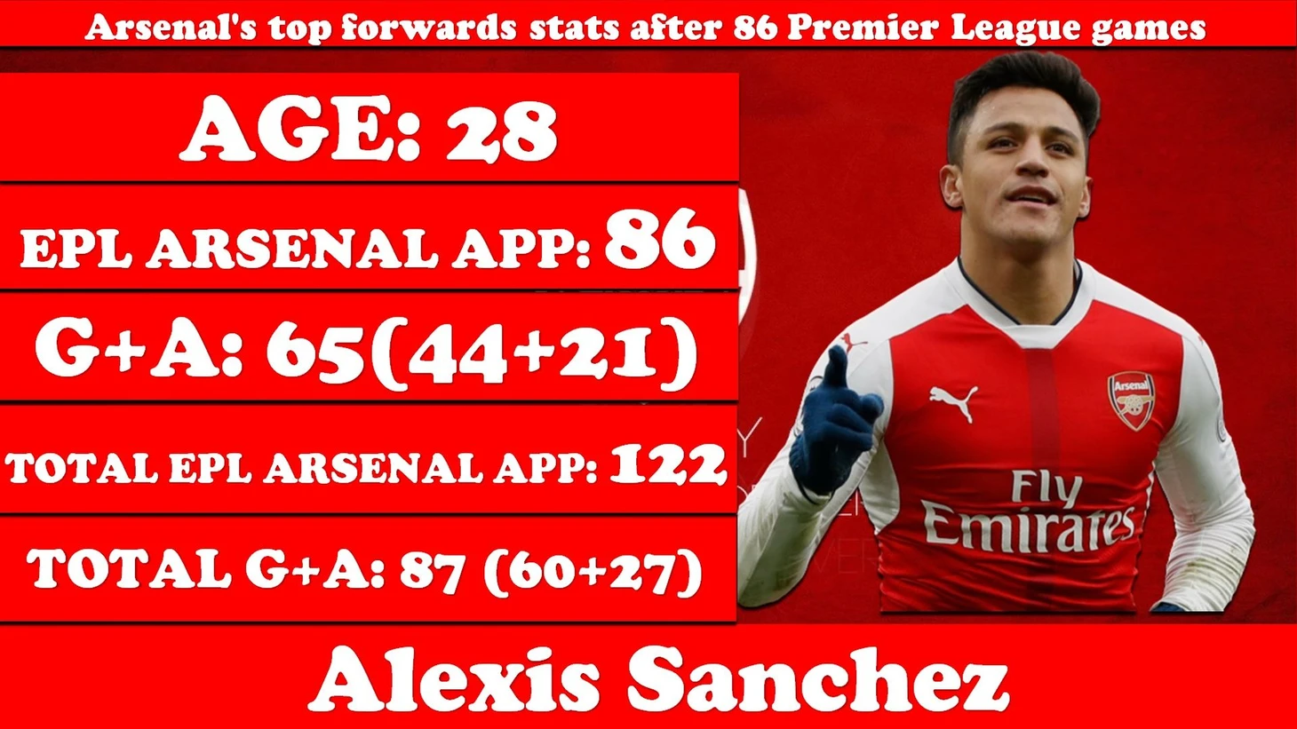 Обамеянг подписал новый контракт с Арсеналом. Сравним его результативность с другими монстрами атаки в АПЛ. Каких показателей они добились проведя 86 игр в АПЛ. Посмотрим к какому возрасту игроки достигали отметки в 86 игр. И взглянем, а чего в итоге им удалось добиться в своей карьере в АПЛ в главном, а для большинства и единственном своем клубе АПЛ.