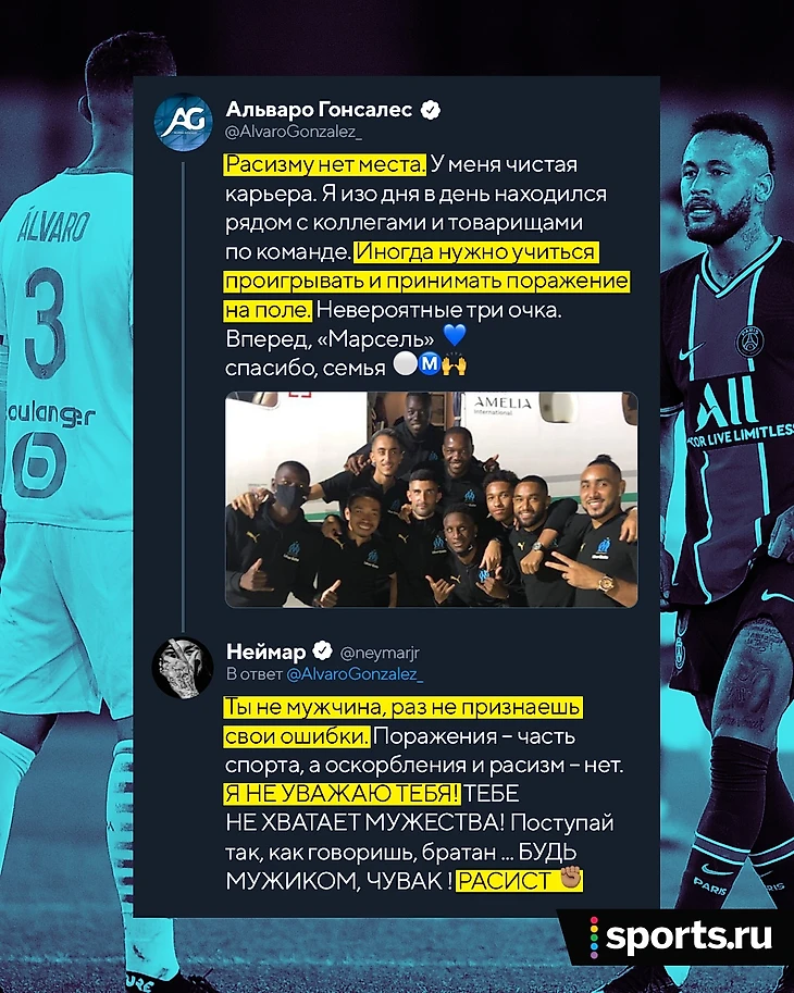 Альваро ответил фотографией с темнокожими одноклубниками. Неймар пришел в реплаи, а потом выкатил объяснительную про расизм на две страницы.