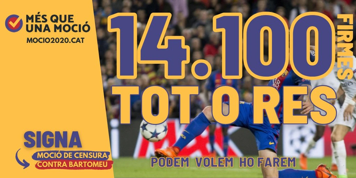 Бывший президент «Барсы» призвал сосьос активнее поддержать Больше чем Вотум. БЧВ набрал 14 100 подписей из необходимых 16 521 за сутки до их предоставления в офис клуба.
