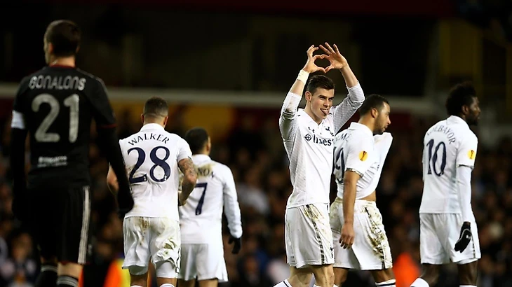 В 1/16 финала "Тоттенхэму" попался французский "Лион". И в первом матче этого противостояния Бэйл оформил дубль. Забил он на 45 и 93 минутах, в обоих случаях ударом со штрафного. Его команда победила 2:1 (ответная игра - 1:1)