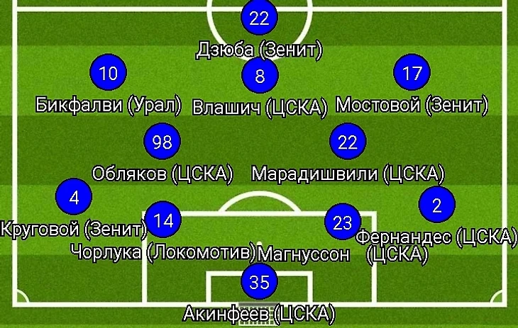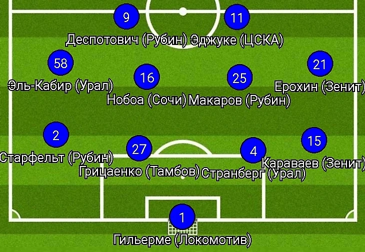 Сборная седьмого тура чемпионата России по футболу (собственное мнение).