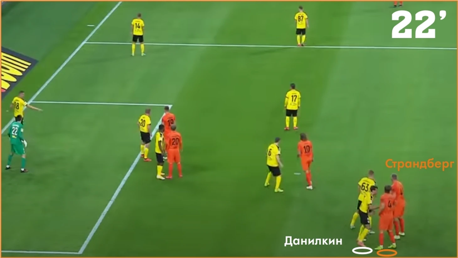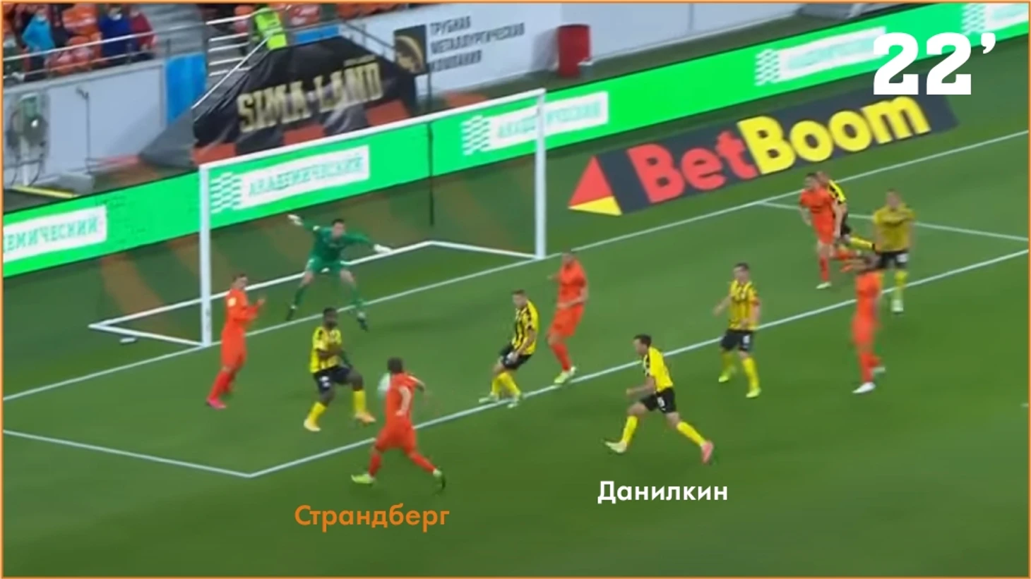 Для наглядности ниже ситуация перед подачей. Видно, что Данилкин защищается против Страндберга и пока не думает о том, что скоро привезёт второй гол за матч.