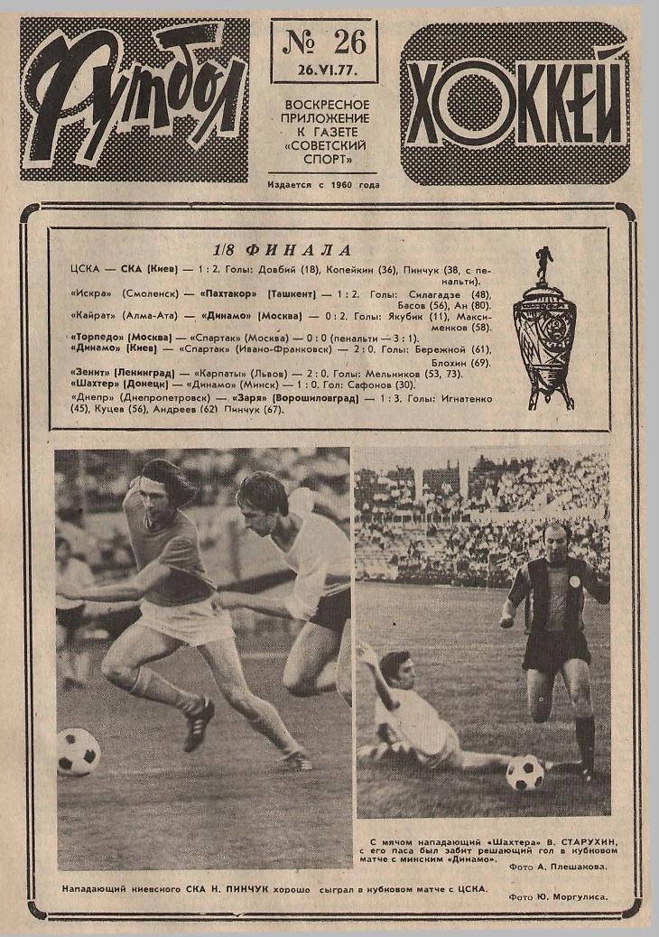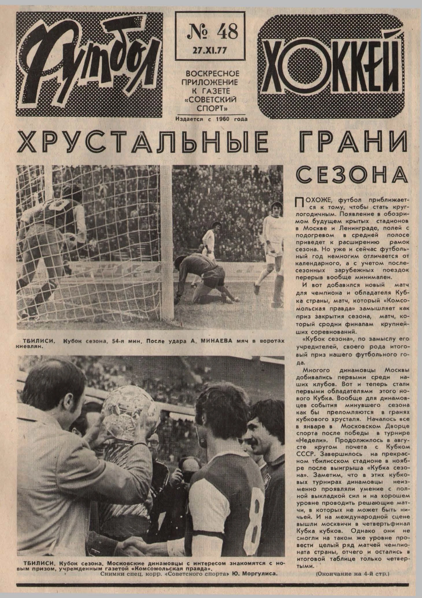 Московские динамовцы взяли Кубок сезона. В 1977-м этот трофей (прототип Суперкубка страны) был разыгран впервые.