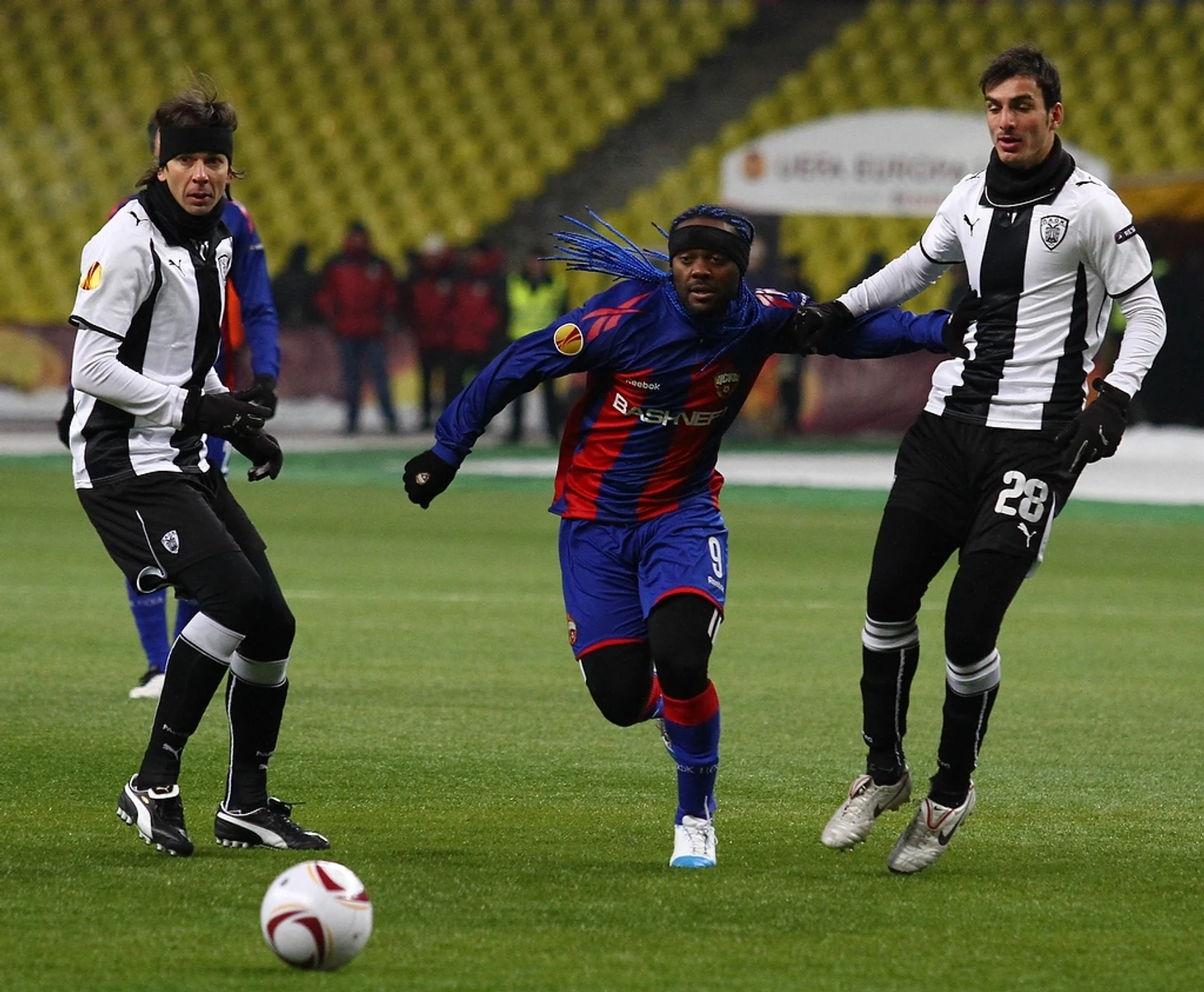 Другой московский клуб, в отличие от «Спартака», имеет положительную статистику противостояний с «черно-белыми». Это столичный ЦСКА. За год до встреч с «Рубином» ПАОК заезжал в Россию, чтобы побороться в раунде плей-офф с московскими «армейцами». Встреча в Греции закончилась минимальной победой ЦСКА: единственный гол забил Томаш Нецид. А вот в Москве в преддверии Дня защитника Отечества «красно-синим» пришлось изрядно попотеть. ПАОК открыл счёт на 67-й минуте, и всё шло к дополнительному времени, однако на 79-й минуте в ворота греков был назначен пенальти. После удара Вагнера вратарь ПАОКа Крешич в прыжке отбил мяч влево от себя, тот отскочил к штанге, срикошетил от неё, и Сергей Игнашевич с полуметра заковырял-таки мяч в ворота.