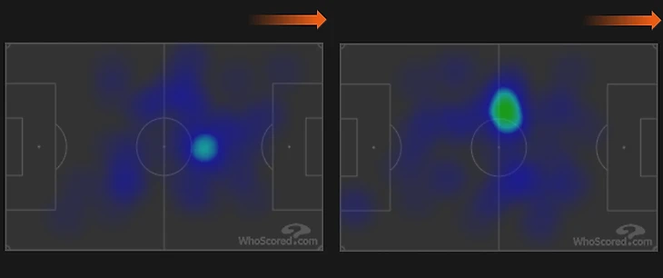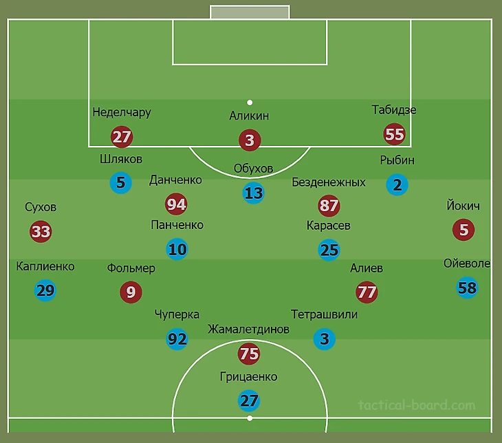 Тепловые карты Панченко и Карасева в матче против Уфы.