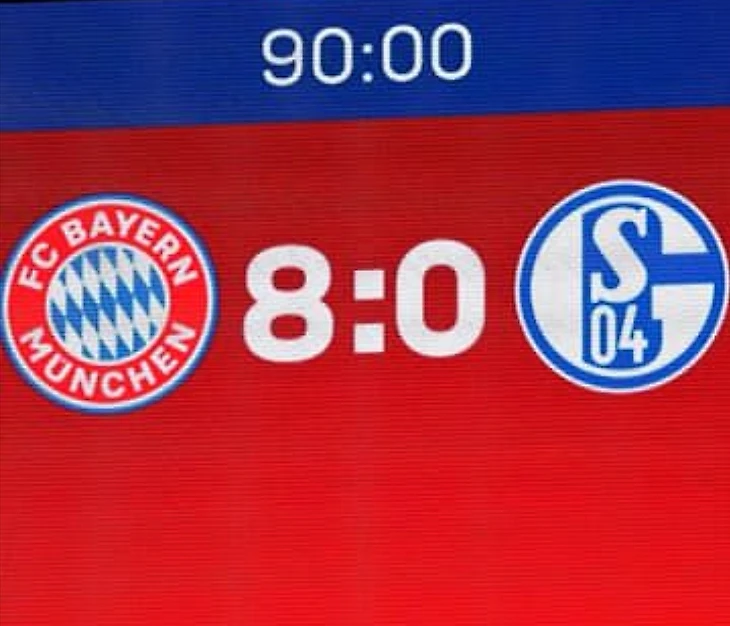 Удивительное дело, состав мюнхенцев меняется, а привычка забивать восемь стабильна. Да, "Шальке" сейчас это не та команда, которая выигрывал Бундеслигу. Да, у гельзенкирхенцев серьёзные проблемы по составу. Но и "Бавария" уже без Алькантары, просто без Алабы и Комана, а так же с Дэвисом на лавке. Может себе позволить.