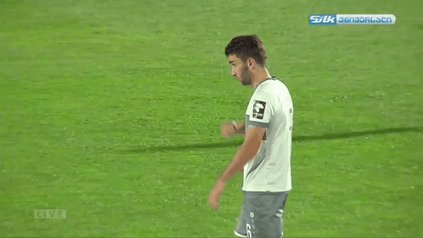 Обычно же как, начинается всё с того, что бригаду красавцев-арбитров показывают крупным планом. Вот они идут шеренгой на поле мимо тумбы, на которой лежит мяч. Но тумбы в Грузии не оказалось, а вышел сбоку какой-то парень, разговаривавший по мобильному, и между делом протянул главному судье этот самый мяч. Забавный эпизод с местным колоритом. Но дальше было ещё забавнее. Один из локомотивских игроков, а именно Бека Дарцмелия, перекрестил перед стартовым свистком не только себя, но и всю динамовскую команду. Я такого раньше не видел, я даже не поленился и гифку себе сделал. И вы представляете, «Динамо» послевсего этого проиграло)))