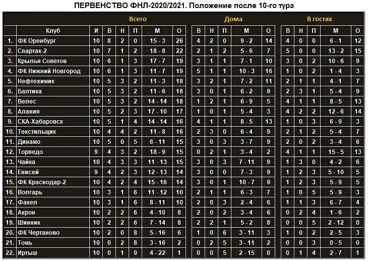 Впрочем, пока уйти в небольшой отрыв удалось только «Оренбургу», остальные участники первенства ФНЛ движутся очень плотной группой. Так что одна победа или одно поражение передвигают команды строчек на 5-6 вверх-вниз по таблице. Всё, по идее, только начинается.