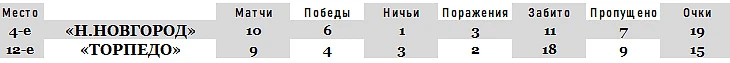 Когда пишутся эти строки, «Торпедо» де-юре в таблице 12-е, но у него на матч меньше. Дело в том, что поединок предыдущего тура «Енисей» - «Торпедо» официально ещё значится просто отменённым. Присудит красноярцам технические 0:3 КДК РФС позже. Так что в 19:30, получив три очка, на поле «автозаводцы» выйдут уже пятыми. То есть будут располагаться в таблице сразу вслед за своим соперником – на дистанции одного очка. Более того, сумма мест у участников матча «Торпедо» - «Нижний Новгород» окажется наименьшей в 11-м туре – 5+4=9, и поэтому именно поединок в Спортивном городке «Лужников» станет центральным матчем дня.