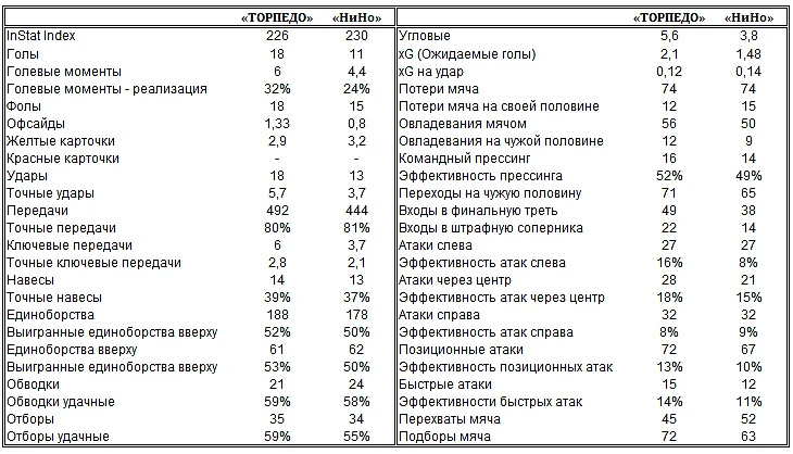 ✔ «ТОРПЕДО» vs «НИЖНИЙ НОВГОРОД»: СРАВНИТЕЛЬНЫЙ АНАЛИЗ КОМАНД (в среднем за матч после 10 туров первенства ФНЛ)