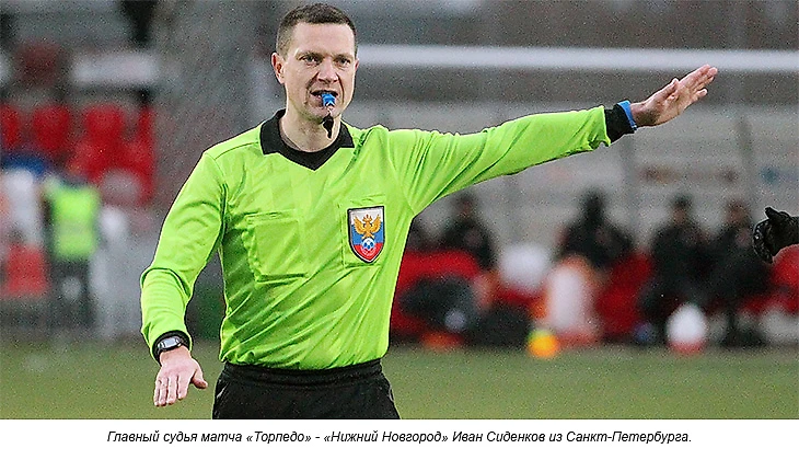Судить матч «Торпедо» - «Оренбург» назначена бригада во главе с 36-летним арбитром из Санкт-Петербурга Иваном Сиденковым. Для него это будет четвёртый матч с участием «Торпедо» в качестве главного арбитра.