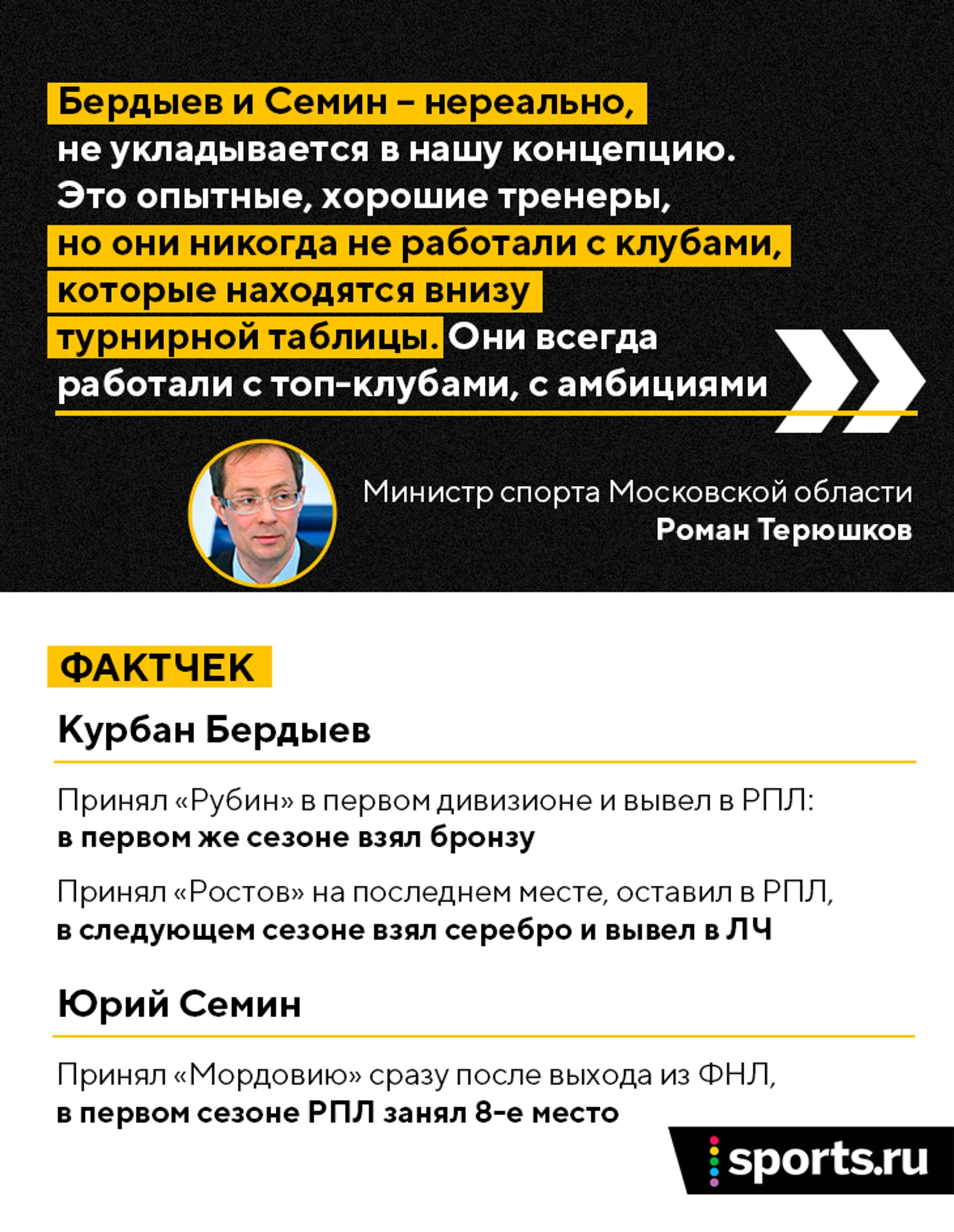 Впереди у Терюшкова важная задача – поиск нового главного тренера. Ниже – его цитаты, которые внушат оптимизм, министр спорта идет на дело предельно подготовленным.