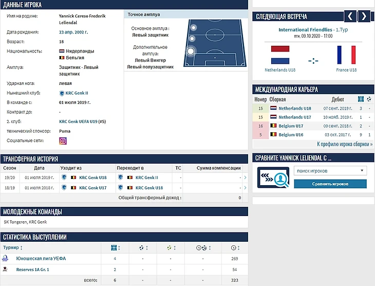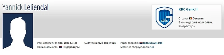Левый защитник - Янник Лелиендаль (Генк, Бельгия)