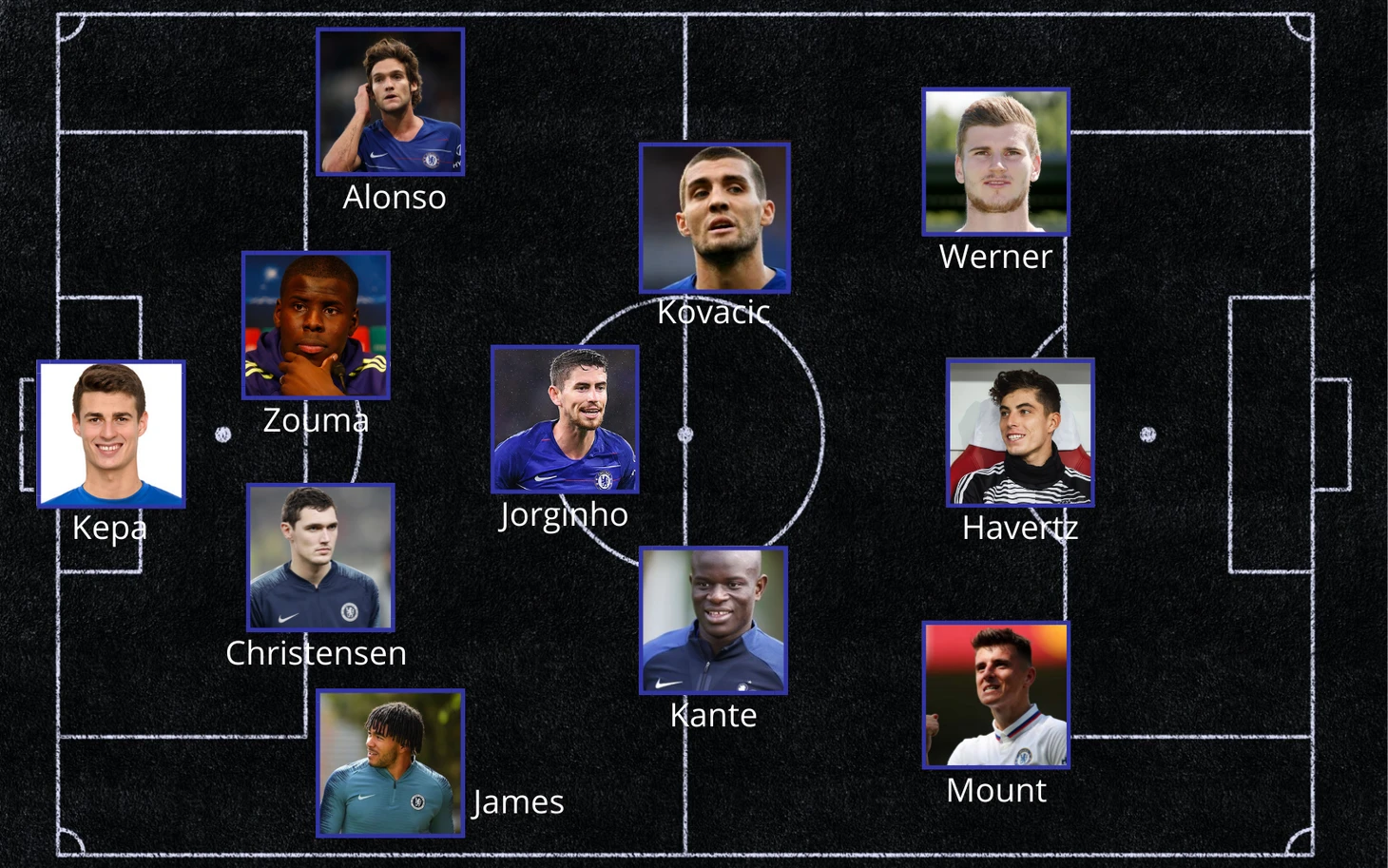 Лэмпард, по сравнению с первым туром, внес некоторые коррективы в стартовый состав. Изначальная расстановка игроков на поле соответствовала схеме 4-3-3, причем Кай Хавертц занимал позицию центрального нападающего, а Тимо Вернер играл слева на фланге. Во время оборонительных действий игроки Челси перестраивались по схеме 4-1-4-1 и фланговые нападающие "синих" опускались в защиту, выполняя очень большой объем работы. Одна из возможных причин использования Хавертца в центральной зоне объясняется как раз его неумением обороняться один-в-один, что заметили многие болельщики лондонцев во время матча с Брайтоном.