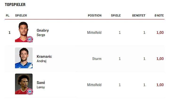 Гнабри перетягивает на себя бомбардирское одеяло – в этом матче он отлично выбирал позицию и не позволял себе чрезмерно транжирить моменты. Сочным получился дебют Сане – 1 гол и 2 передачи в матче против бывшего клуба. Его связка с Гнабри стала едва ли не событием матча: наверняка вам показалось, что по полю летают прошедшие курс омоложения Франк Рибери и Арьен Роббен. Даже номера те же, и Сане пару раз смещался с правого фланга в центр, чтобы пробить.