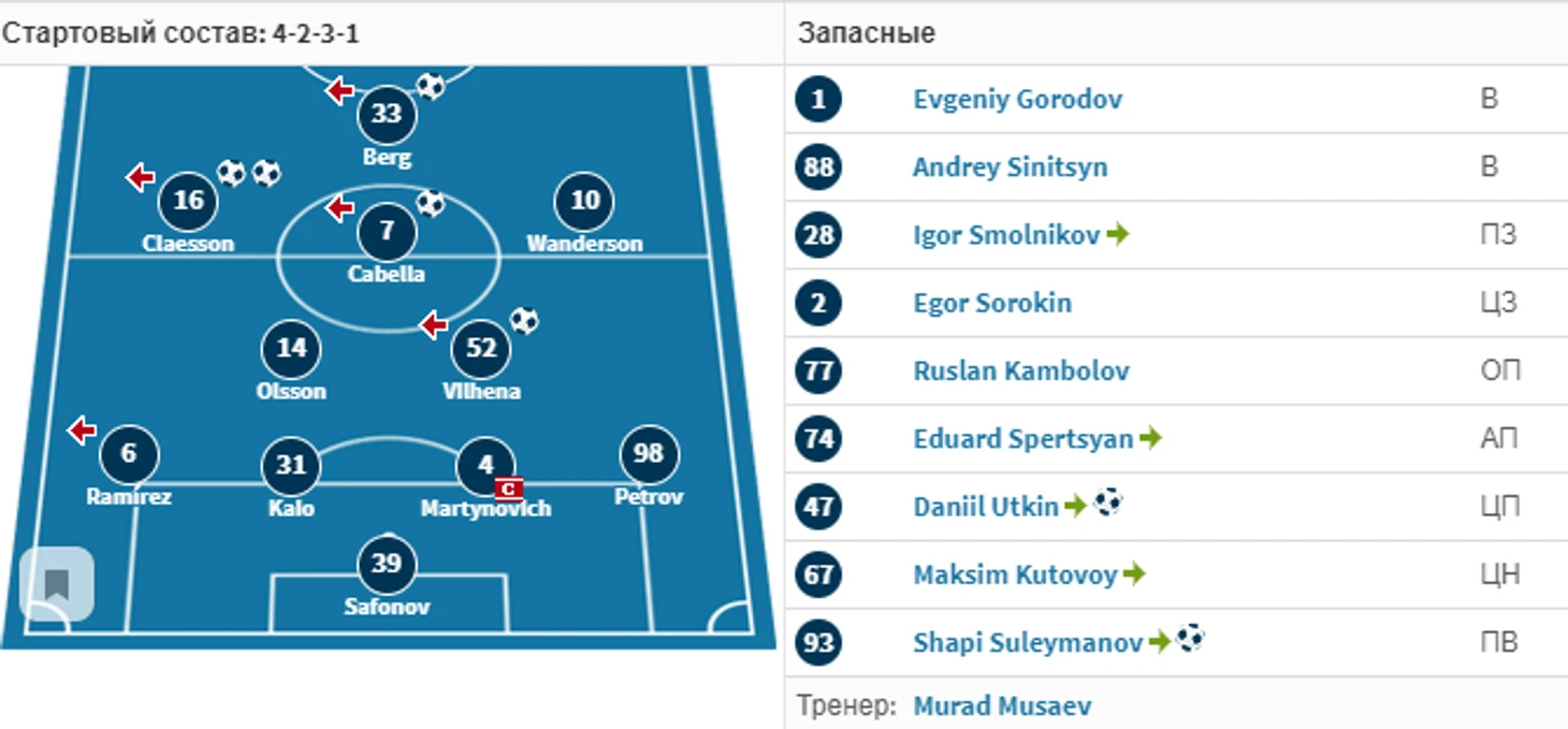 Первым делом рассмотрим состав на матч, мне кажется что Мурад Мусаев не зря выбрал именно такой состав на матч с Химками, кто бы что не говорил про моральное выгорание после матча, где Краснодар забил 7 мячей гостям с Москвы, по-моему мнению надо было посмотреть как состав будет взаимодействовать, предлагаю вам ознакомится со следующими фактами: