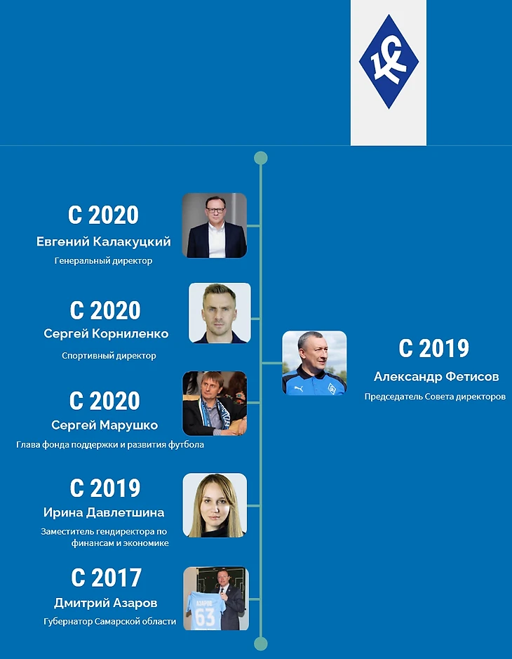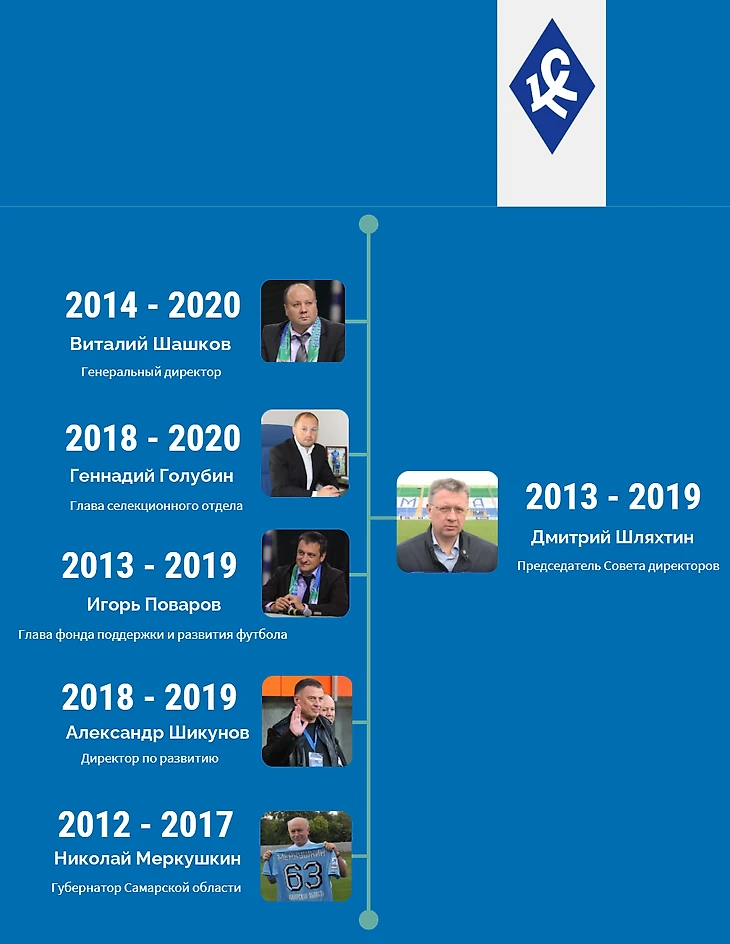 Главный в клубе — председатель совета директоров Александр Фетисов. Он занял это место с приходом на должность губернатора Самарской области Дмитрия Азарова, сменив министра спорта Дмитрия Шляхтина.