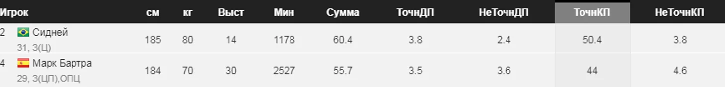 2. В двух стартовых встречах в паре центральных защитников теперь играет Марк Бартра, обладающий хорошим первым пасом. Испанец и в прошлом сезоне сыграл в 30 играх, однако, именно в формации 4-2-3-1 вместо него играл Сидней. У 31-летнего бразильца показатели среднего количества передач, и количества точных коротких/длинных передач несколько лучше.