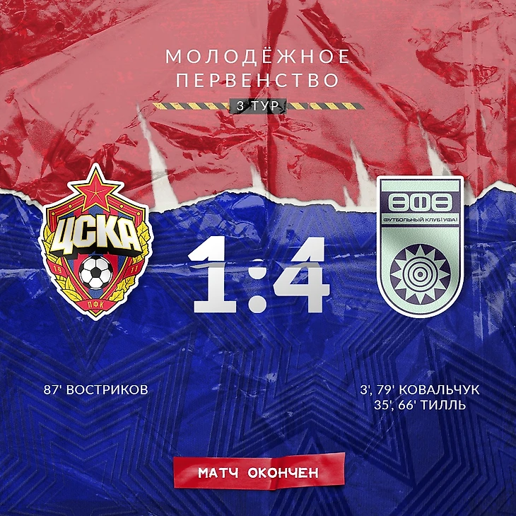 Молодёжка ЦСКА разгромно уступила сверстникам из Уфы