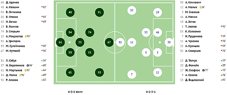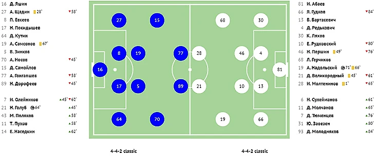 На 74-й минуте «обрезался» краснодарец Вячеслав Якимов, гости моментально убежали в быстрый отрыв, который ударом со средней дистанции под дальнюю штангу завершил свежий Жига Шкофлек. Неприятный оказался удар для вратаря, с отскоком от газона.