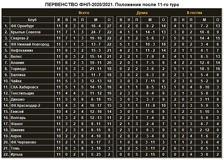 Лидер первенства «Оренбург» не может выиграть второй тур подряд, но, имея солидный запас, по-прежнему отлично чувствует себя во главе таблицы, разница в которой между вторым и десятым местами составляет всего 4 очка.