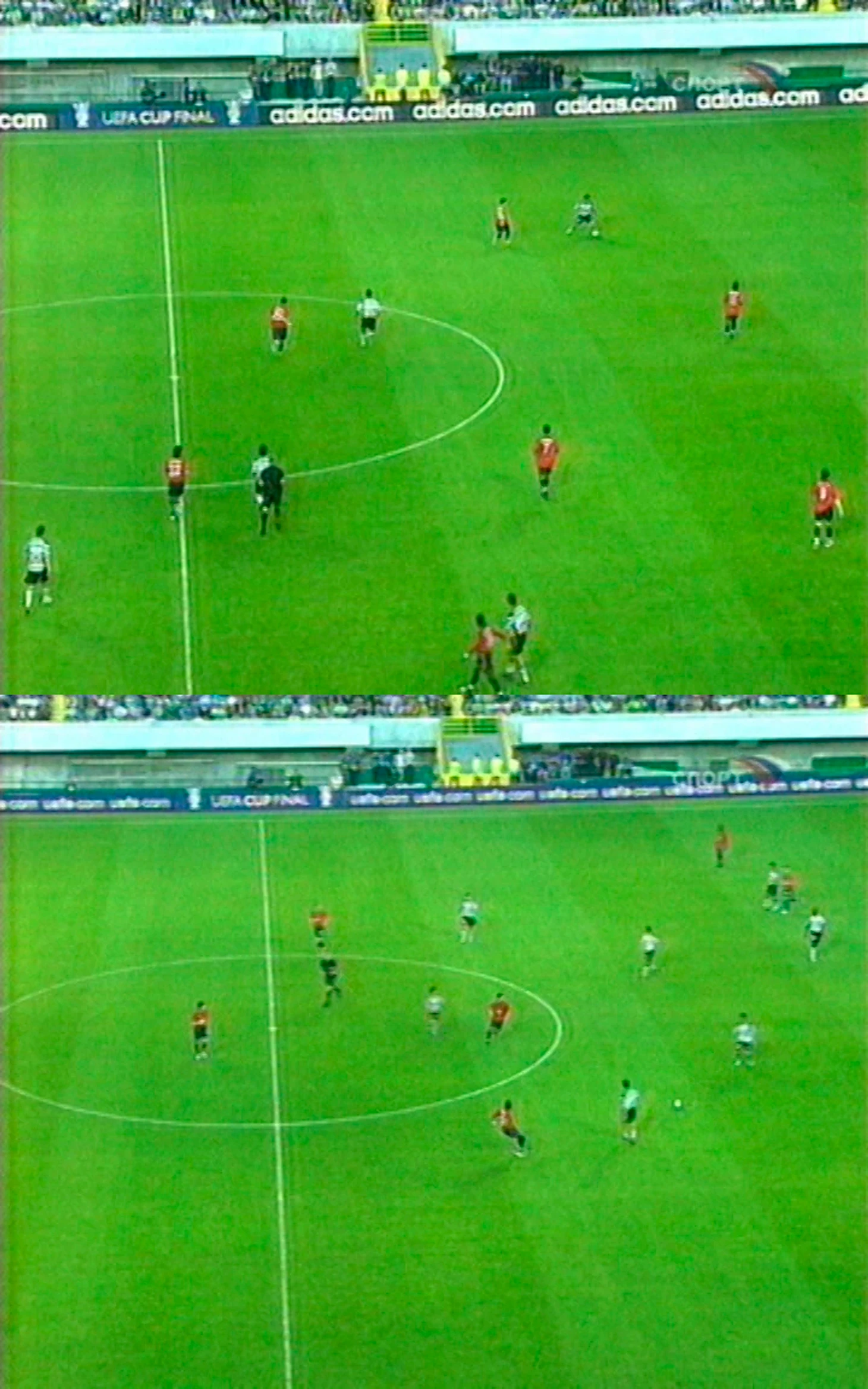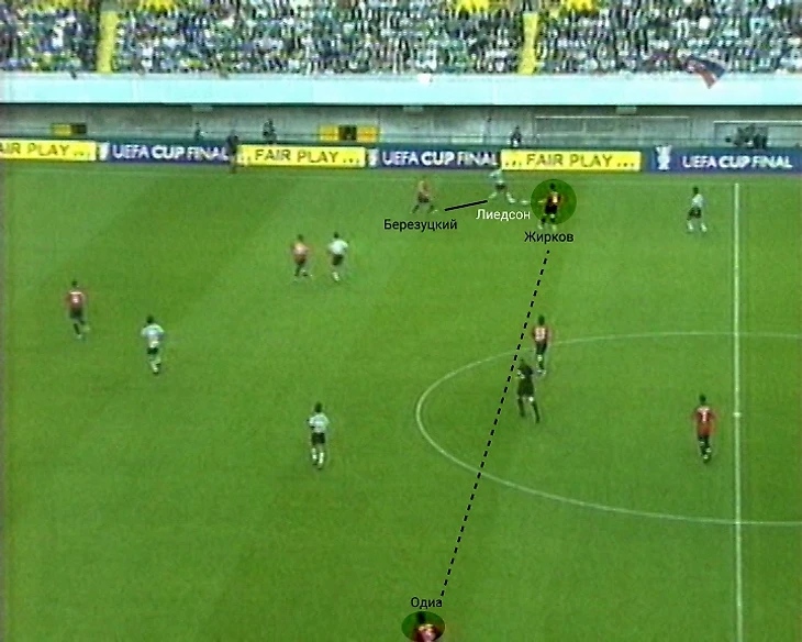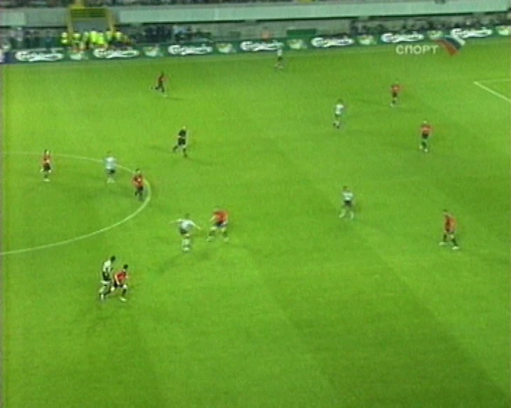 ЦСКА образца финала Кубка УЕФА команда, которая не играла в позиционный наступательный футбол. Армейцы имели в составе 5 сугубо оборонительных игроков – 3 центрдэфа, 2 опорных полузащитника. Рахимич и Алдонин очень редко включались в атаки, поэтому давление, которое оказывал ЦСКА, состояло из прессинга и скоростных атак после отбора мяча. Пожалуй, в матче будет сложно найти много отрывков, когда красно-синие владели мячом больше минуты на чужой половине поля.