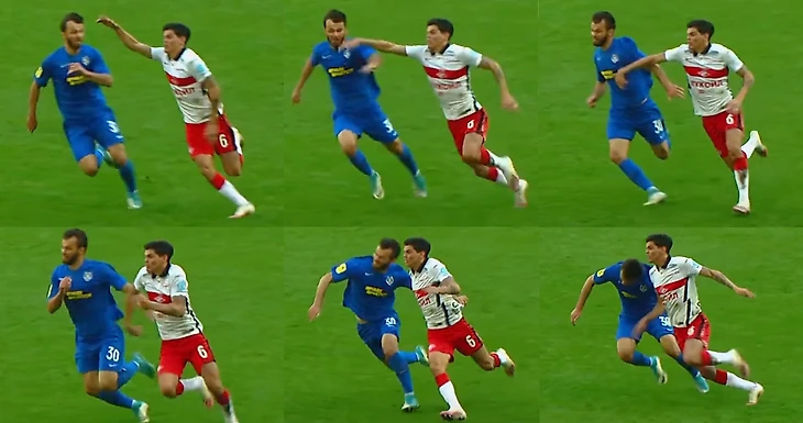 Давайте разберем этот эпизод. Панин углядел нарушение правил в действиях Айртона, который совершил сольный проход и отдал голевую передачу на Понсе. Ему показалось, что Айртон помогал себе правой рукой оттеснить от себя соперника. Но если смотреть повтор, то мы видим, что Айртон даже не коснулся противника. Но даже если и было малейшее касание, то как нам объяснял РФС эту трактовку как – незначительный контакт. В очередной раз мы наблюдаем двойные стандарты против «Спартака». На игре работал VAR, но похоже честный футбол не в их интересах.