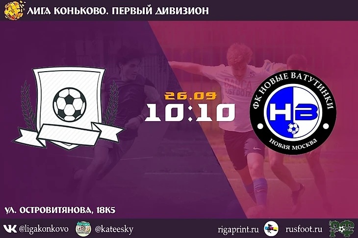 Кварта одной из первых заявилась в первый дивизион Лиги Коньково, чуть позже - Новые Ватутинки. Обе команды хотят выиграть свой дебютный матч, однако заявка Новых Ватутинок выглядит более опытной, да и самой команде уже 5 лет - сыгранность может сильно повлиять на результат этого матча.