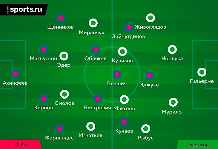 В атаке, как и в матчах со «Спартаком» (1:2) и «Тамбовом», «Локомотив» сыграл в два нападающих – Федора Смолова и Эдера. Перед игрой с ЦСКА Николич назвал эту схему идеальной для нынешнего «Локо» – видимо, ждем ее и дальше.