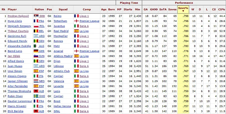 Райкович пропустил всего 18 голов, хотя по xG должен был 26,8. Мастерство Предрага или проблемы в реализации соперников спасли «Реймс» от 8,8 голов.