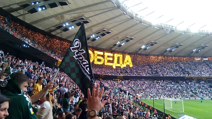 На фото: над головой печально проплывает баннер с номерами Перейры и Каборе(( прощальный матч.