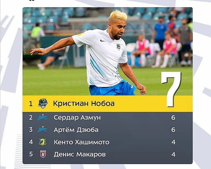 35ти летний Кристиан Нобоа сыграл не менее 90 минут в 7 матчах этого сезона и забил уже 7 мячей. В матче "Сочи" и "Краснодара" он открыл счет с пенальти, а итоговый результат установил Петров из "Краснодара". 1-1.