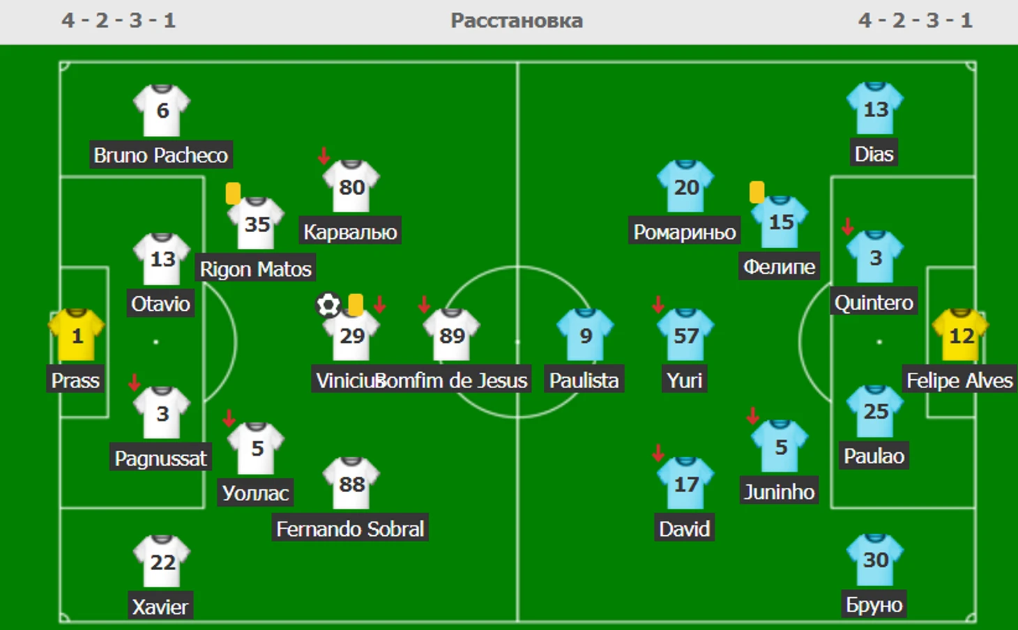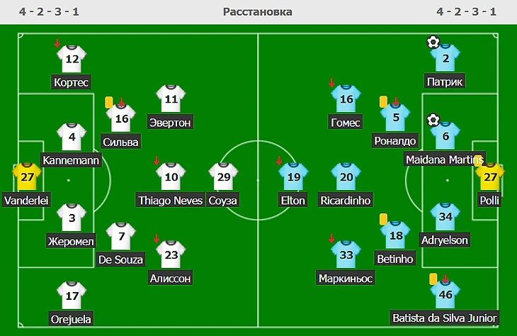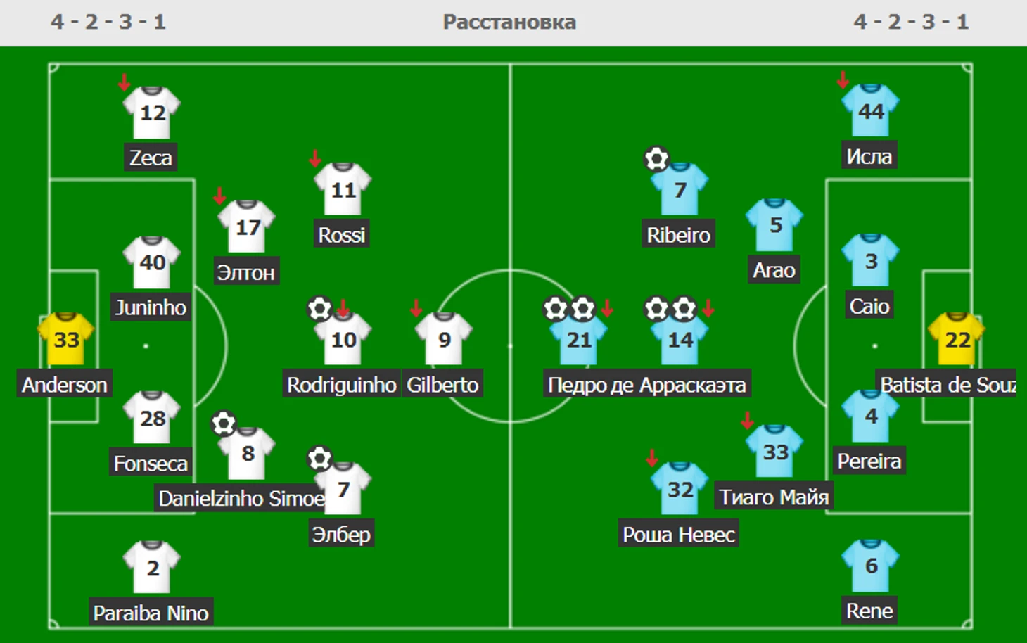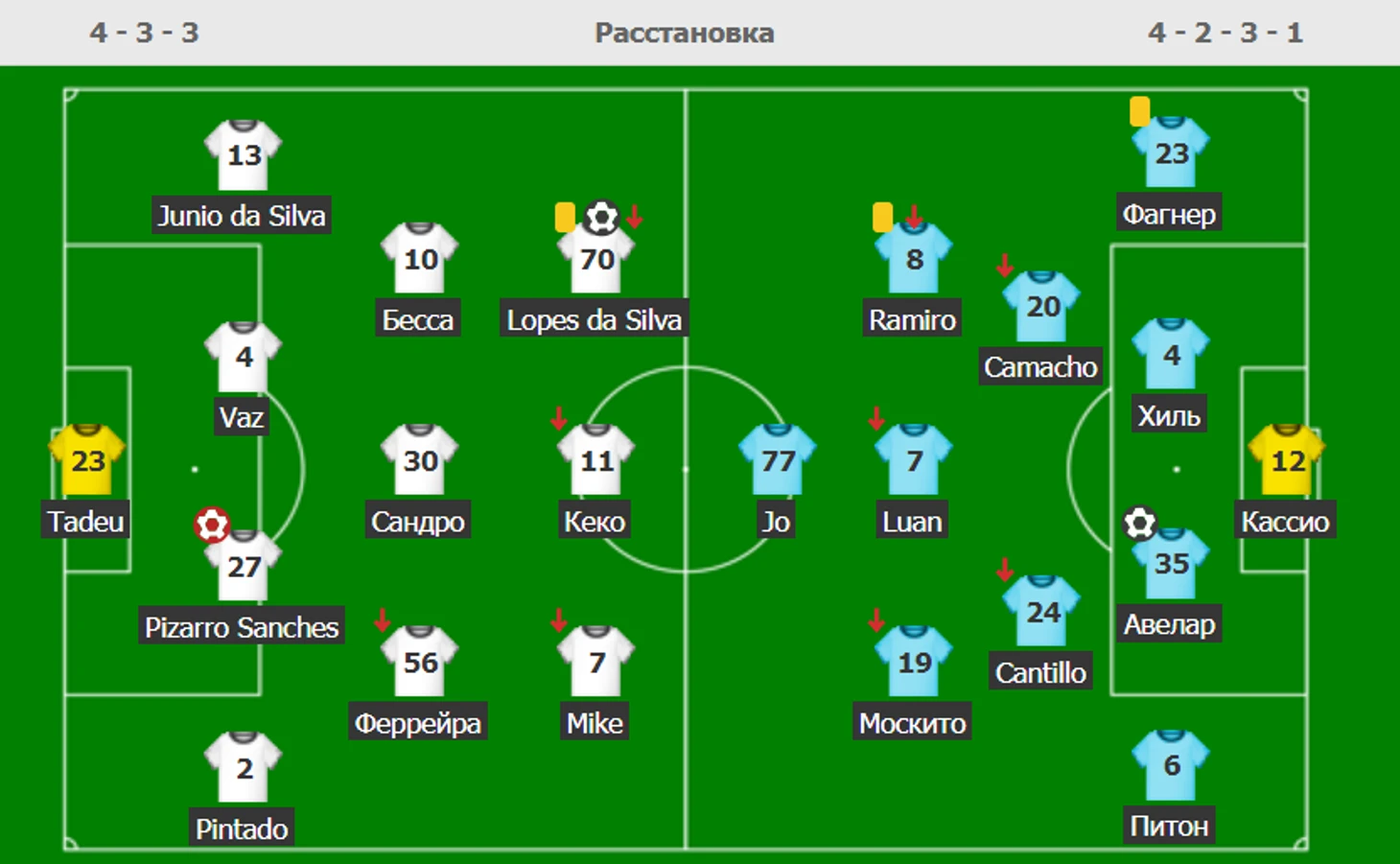 Хорошо проявили себя центральные защитники Авелар и Жиль. Был не слишком активен, как обычно, на правом краю латераль Вагнер. Здорово же подключался к атакам левый латераль Питон. В созидании проявлял себя Люан, а вот Жо был незаметен.