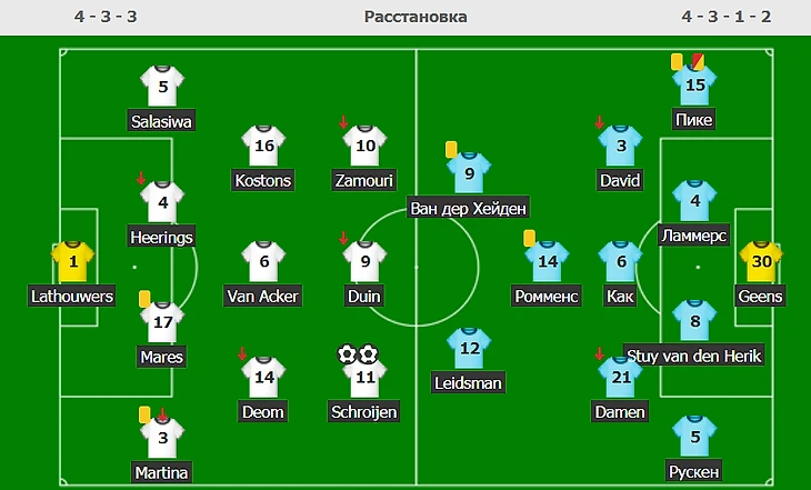 До удаления у соперника еще испытывал какое-то сопротивление, но после удаления игра получила развитие только в одном направлении. Выделялся левый форвард Замури, ну и конечно автор двух голов Схройен. Защита играла практически без ошибок.