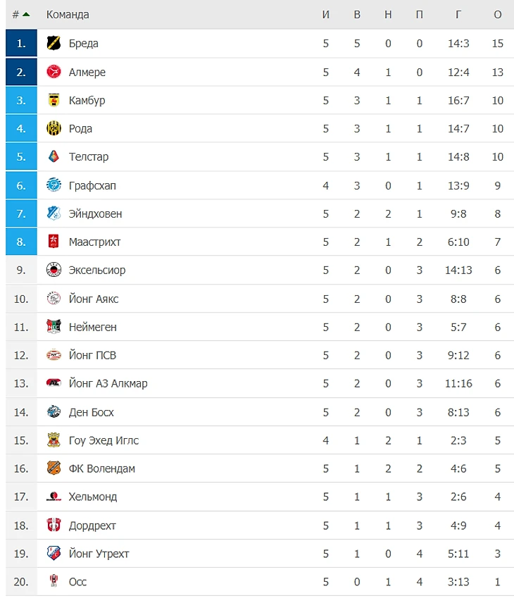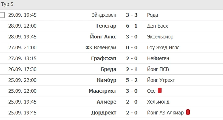 Чемпионат Голландии. Эрстедивизи. 5-й тур. Обзор матчей