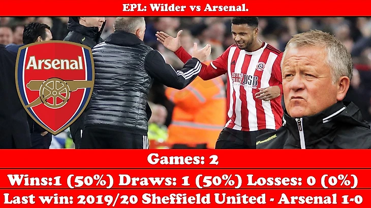 Статистика Криса Уайлдера против Арсенала в рамка АПЛ - одна победа и одна ничья.