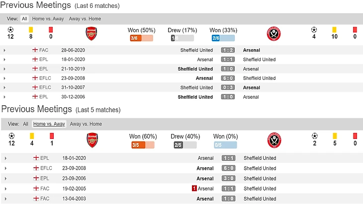 Статистика последних встреч соперников между собой. Чтобы посмотреть на глубину шести игр, надо откатиться в прошлое аж к 2006-му году. Факт: Арсенал не проигрывает Шеффилду пять домашних матчей к ряду.
