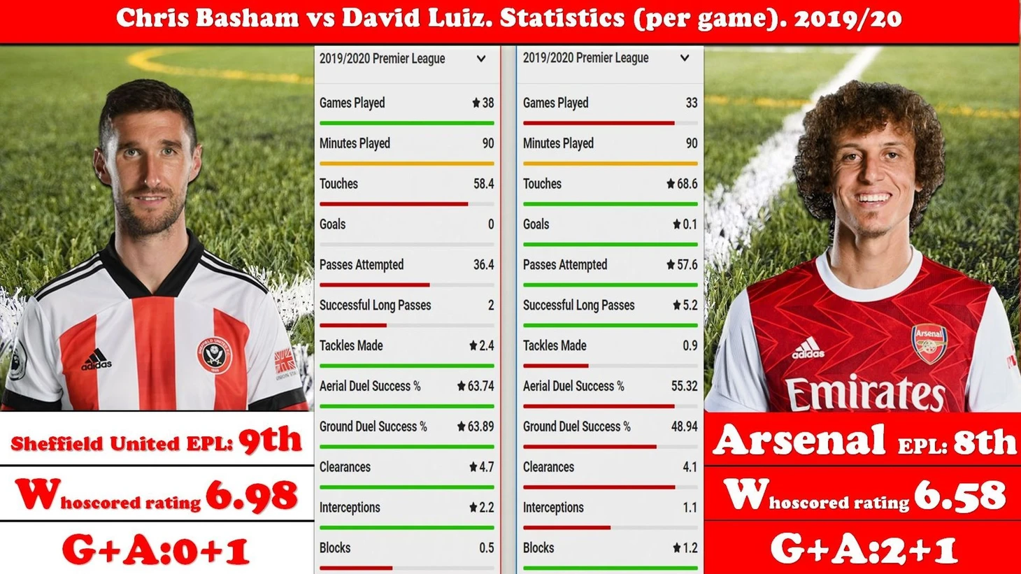 Раз Шеффилд команда где наивысший рейтинг имеют игроки обороны, то сравним лучшего защитника Клинков, с лучшим защитником (многие считают, что отчасти полузащитником) Арсенала Давидом Луизом.