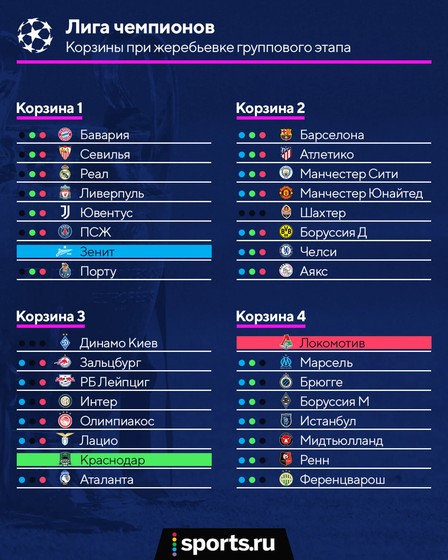 И пока у нас достаточно времени, чтобы распределить трио российских клубов по группам. Кого вы видите будущими соперниками «Зенита», «Краснодара» и «Локомотива»? Накидывайте варианты – возможно, ваш прогноз окажется очень точным.
